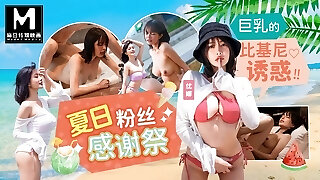 Busty Japanese girl Suzuna Komiya blowing stiff sausages by the poolside