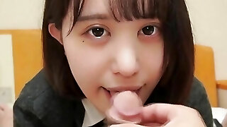 Very cute 18 year old dark haired Japanese babe in uniform blow job pussy internal ejaculation Point Of View sex. Uncensored