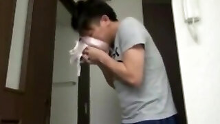 A Japanese young brother fuck his older sister in douche