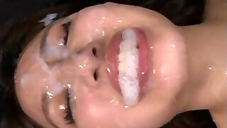 Mao Saito gang-fuck by plenty ends up covered with cum