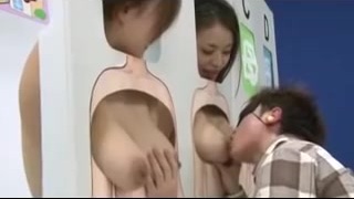 The three brunette hotties enjoy sharing his huge Japanese pipe during hardcore group sex session