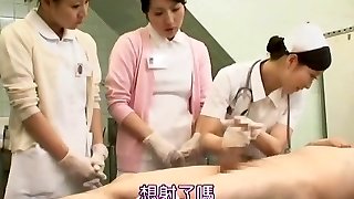 Super-steamy asian nurses rubbing shaft for sperm sample