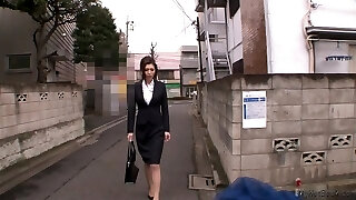 Tired chestnut haired office clerk Mami Asakura is screwed in subway train