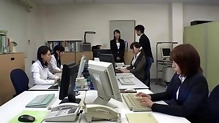 Awesome kawaii Asian office slut sucks two intense cocks at work